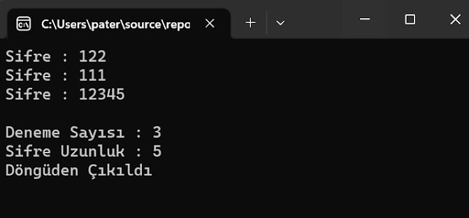 Console.WriteLine("Parola Deneme Sayısı : " + counter);